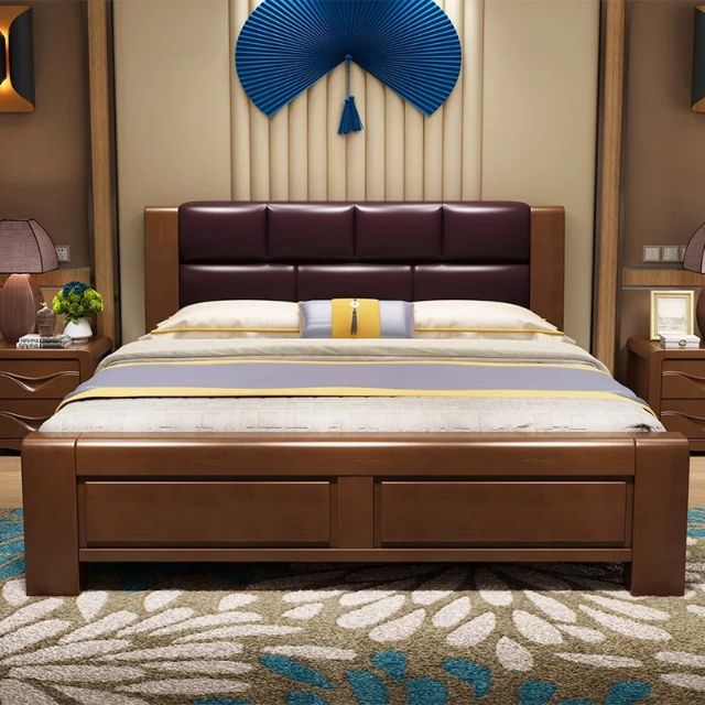 Gold Walnut Solid Wood Bed Double Bed 1 8m Simple Modern Wedding Bed Master Bedroom 1 5m High Box Storage Bed Shopee Malaysia